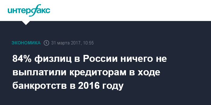 84% физлиц в России ничего не выплатили кредиторам в ходе банкротств в 2016 году