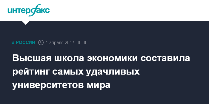 Москва. 31 марта. INTERFAX.RU - Институт образования Высшей школы экономики (НИУ ВШЭ) опубликовал ежегодный пародийный рейтинг самых удачливых университетов мира (Fortunate 500 Universities).