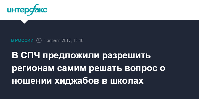 Парламент Чеченской Республики 31 марта принял поправки к закону, разрешающие учащимся носить одежду, которая отражает их религиозные убеждения. Таким образом, школы и вузы, устанавливая требования к форме одежды школьников и студентов, должны будут учитывать право учащихся одеваться согласно народным традициям и религиозным верованиям, например, носить хиджабы.