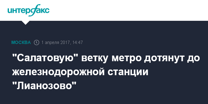Москва. 1 апреля. INTERFAX.RU - Люблинско-Дмитровская линия московского метро будет продлена до железнодорожной платформы "Лианозово" в течение ближайших трех лет, сообщил заместитель мэра Москвы по вопросам градостроительной политики и строительства Марат Хуснуллин.
