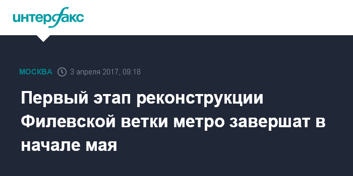 "В конце апреля - начале мая завершится первый этап реконструкции Филевской линии Московского метрополитена. В результате будут реконструированы вестибюли и платформы при следовании из центра станций "Студенческая", "Фили", "Пионерская", "Кутузовская", которыми ежедневно пользуется свыше 100 тыс. человек", - сказал Ликсутов "Интерфаксу" в понедельник.
