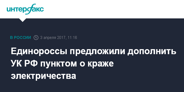 Единороссы предложили дополнить УК РФ пунктом о краже электричества
