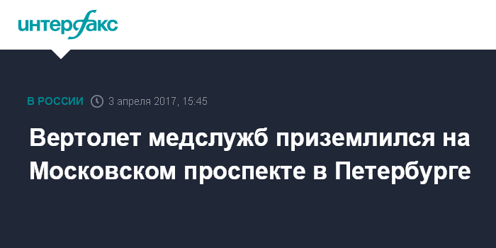 Москва. 3 апреля. INTERFAX.RU - Вертолет медицинских служб приземлился на Московском проспекте Петербурга около станции метро "Технологический институт", передал корреспондент "Интерфакса" в понедельник.