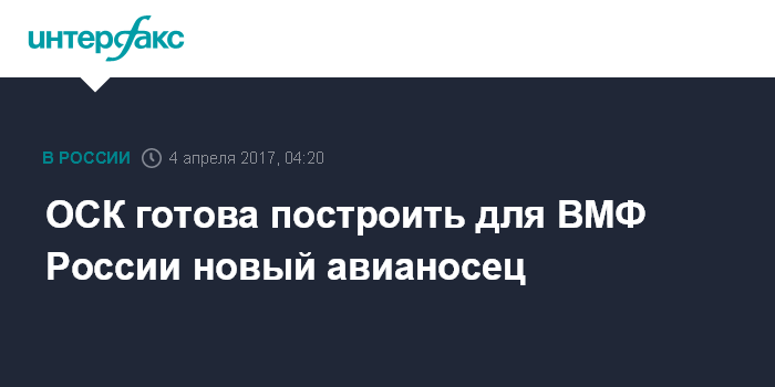 Москва. 3 апреля. INTERFAX.RU - "Объединенная судостроительная корпорация" готова построить для ВМФ новый авианосец, вероятнее всего, с ядерной энергоустановкой, сообщил глава ОСК Алексей Рахманов в эфире радиостанции "Эхо Москвы".