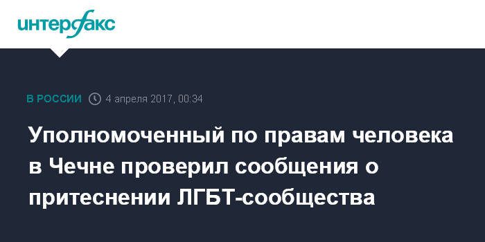 "Обращения по этому поводу не поступали. По публикациям в СМИ проверку проводил уполномоченный по правам человека в Чечне", - сказала Москалькова "Интерфаксу". Уполномоченный по правам человека в Чечне Нурди Нухажиев назвал информацию о массовых задержаниях представителей ЛГБТ-сообщества в республике "полным бредом и попыткой инициировать порочащий чеченское общество скандал", сообщается на сайте омбудсмена.