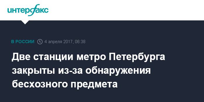 Москва. 4 апреля. INTERFAX.RU - Станции петербургской подземки открылись для пассажиров утром во вторник, позже две станции на севере красной ветки были закрыты и-за обнаружения бесхозного предмета, сообщило ГУП "Петербургский метрополитен".