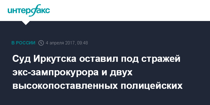 Суд Иркутска оставил под стражей экс-зампрокурора и двух высокопоставленных полицейских