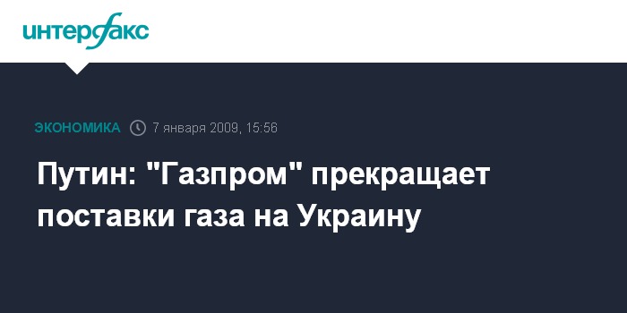 Москва. 7 января. INTERFAX.RU - Премьер Владимир Путин поддержал предложение главы "Газпрома" Алексея Миллера о прекращении поставок газа на границу России и Украины.