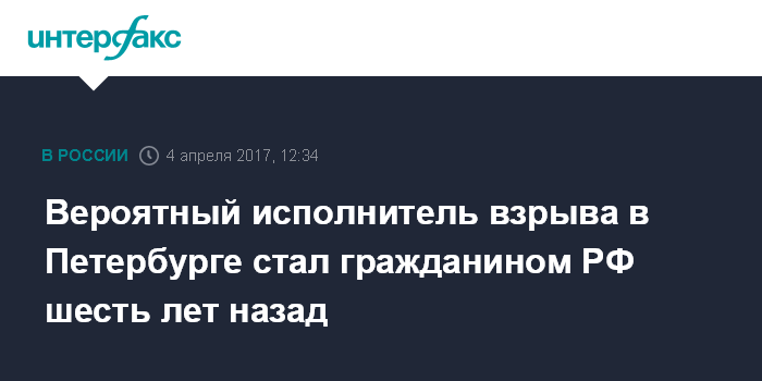 Вероятный исполнитель взрыва в Петербурге стал гражданином РФ шесть лет назад