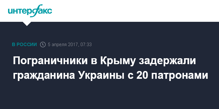 Москва. 5 апреля. INTERFAX.RU - Российские пограничники предотвратили попытку перемещения украинцем 20 патронов через границу России с Украиной, сообщила пресс-служба Пограничного управления ФСБ России по Республике Крым.