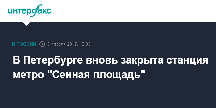 Москва. 5 апреля. INTERFAX.RU - Станция метро "Сенная площадь" в Петербурге в среду утром вновь закрыта по техническим причинам.