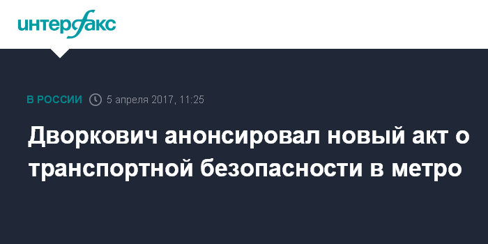 Москва. 5 апреля. INTERFAX.RU - Новый акт о транспортной безопасности в метрополитене будет выпущен в среду. Об этом сообщил вице-премьер РФ Аркадий Дворкович на итоговой коллегии Минтранса.
