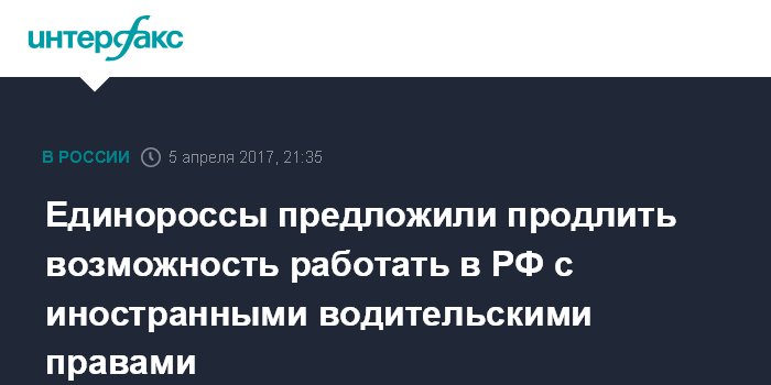 Москва. 5 апреля. INTERFAX.RU - В Госдуму внесен законопроект, которым на год - до 1 июня 2018 года - продлевается возможность работать в России с иностранными водительскими правами.