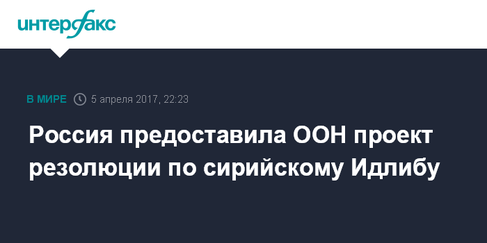 Москва. 5 апреля. INTERFAX.RU - Россия в среду распространила в Совете Безопасности ООН короткий проект резолюции по Сирии, нацеленный на расследование химической атаки в Идлибе, в ответ на документ, представленный западной тройкой стран, сообщил пресс-секретарь Постоянного представительства РФ при ООН Федор Стржижовский.