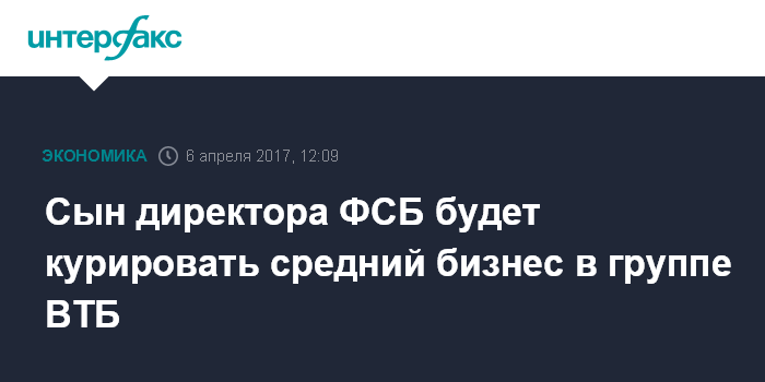 Сын директора ФСБ будет курировать средний бизнес в группе ВТБ