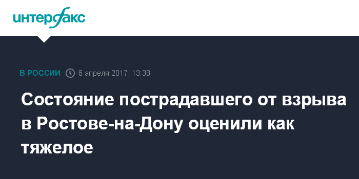 Состояние пострадавшего от взрыва в Ростове-на-Дону оценили как тяжелое