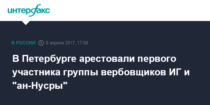 Москва. 6 апреля. INTERFAX.RU - Октябрьский районный суд Санкт-Петербурга в четверг арестовал первого из восьми предполагаемых вербовщиков запрещенных в РФ организаций, задержанных накануне.