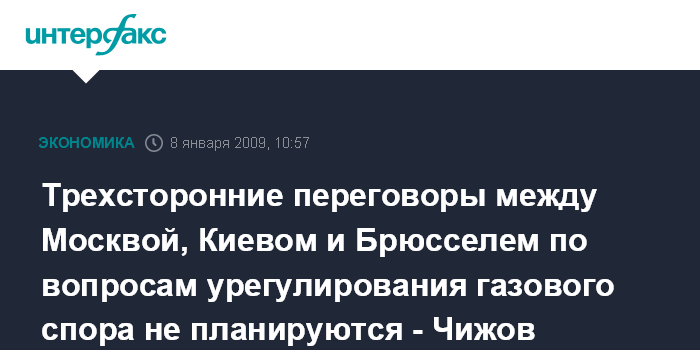 Трехсторонние переговоры между Москвой, Киевом и Брюсселем по вопросам урегулирования газового спора не планируются - Чижов