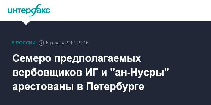 Семеро предполагаемых вербовщиков ИГ и "ан-Нусры" арестованы в Петербурге