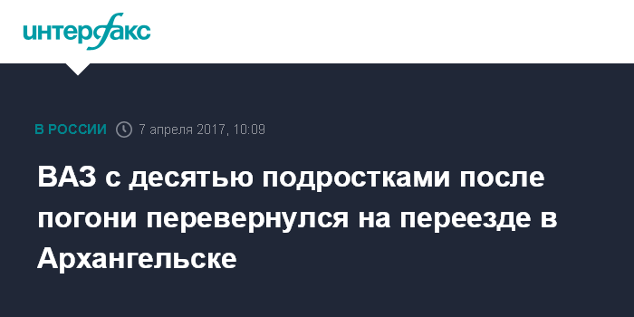 Москва. 7 апреля. INTERFAX.RU - Легковой автомобиль, в котором находилось десять несовершеннолетних, перевернулся на железнодорожном переезде в Архангельске, сообщает пресс-служба регионального Управления МВД.
