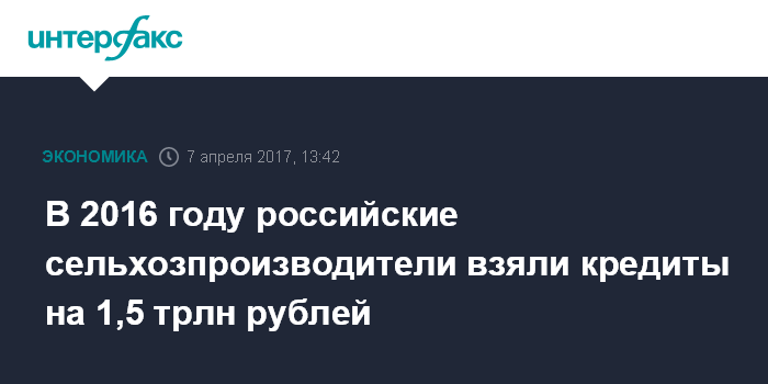 Он отметил, что "в прошлом году наши сельхозпроизводители взяли кредитов на 1,5 триллиона рублей, это практически на треть больше, чем в 2015 году".