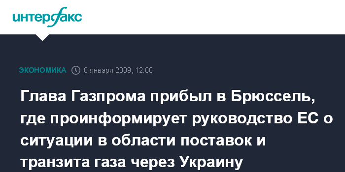 "Председатель правления Алексей Миллер прибыл в Брюссель для того, чтобы проинформировать руководство Европейской комиссии Европейского союза о складывающейся в данный момент кризисной ситуации в области поставок и транзита газа через территорию Украины. Запланированы три двухсторонние встречи: с членом комиссии Европейских сообществ, ответственным за вопросы энергетики Андрисом Пиебалгсом, председателем Комиссии европейских сообществ Жозе Мануэлом Баррозу, председателем Европарламента Хансом-Гертом Петтерингом", - сказал он.