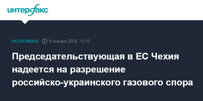 Председательствующая в ЕС Чехия надеется на разрешение российско-украинского газового спора