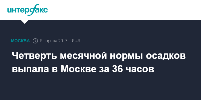 Москва. 8 апреля. INTERFAX.RU - Дожди пополнили апрельскую копилку осадков в Москве на 11 мм за последние 36 часов, сообщили "Интерфаксу" в столичном метеобюро в субботу.