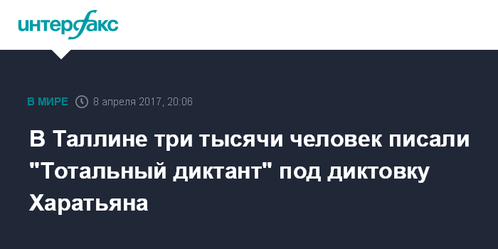 Москва. 8 апреля. INTERFAX.RU - В столице Эстонии в субботу около 3 тысяч человек приняли участие в написании "Тотального диктанта".