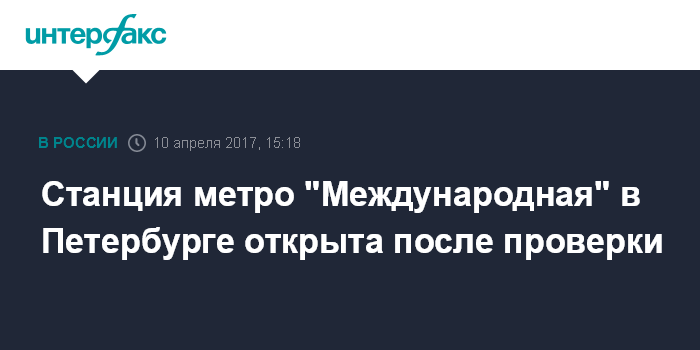 Москва. 10 апреля. INTERFAX.RU -Станция метро "Международная" в Петербурге открыта после проверки в понедельник днем.