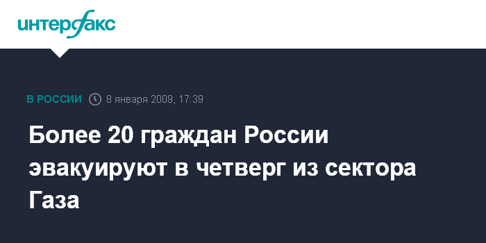 Иерусалим. 8 января. INTERFAX.RU - Подходит к концу эвакуация из сектора Газа группы иностранцев, в том числе граждан РФ и Украины, сообщил в четверг "Интерфаксу" глава представительства России в Палестине Сергей Козлов.