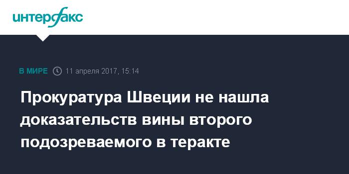 Прокуратура Швеции не нашла доказательств вины второго подозреваемого в теракте