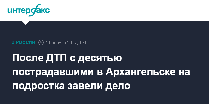 Москва. 11 апреля. INTERFAX.RU - Подросток стал фигурантом дела о ДТП с десятью пострадавшими в Архангельске.