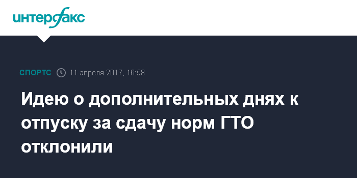 Москва. 11 апреля. INTERFAX.RU - Инициатива о добавлении дополнительных оплачиваемых дней к отпуску за сдачу норм ГТО не получила поддержку, сообщил вице-премьер Виталий Мутко.