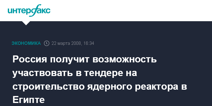По его словам, соответствующий тендер будет объявлен Египтом через несколько месяцев. Он пояснил, что аналогичные соглашения о сотрудничестве в мирном использовании ядерной энергетики подписаны Египтом примерно с 10 странами.