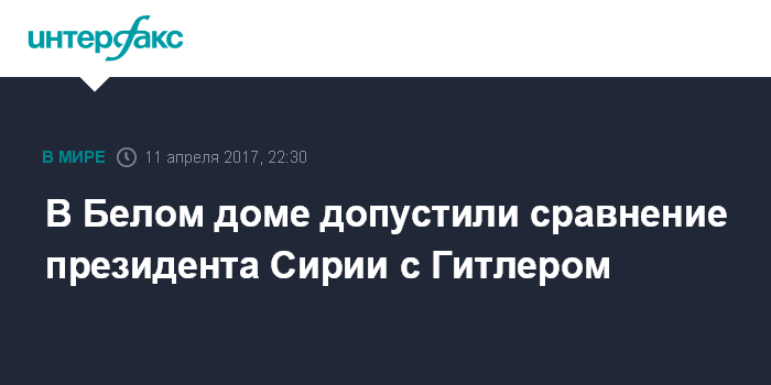 Москва. 11 апреля. INTERFAX.RU - Представитель Белого дома США Шон Спайсер в ходе брифинга во вторник допустил сравнение президента Сирии Башара Асада с Адольфом Гитлером.