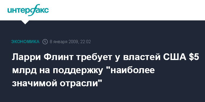 Ларри Флинт требует у властей США $5 млрд на поддержку "наиболее значимой отрасли"