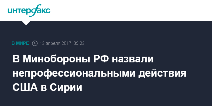 В Минобороны РФ назвали непрофессиональными действия США в Сирии
