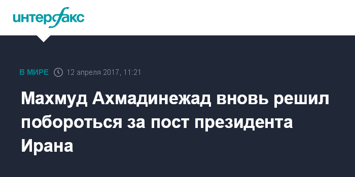 Москва. 12 апреля. INTERFAX.RU - Экс-президент Ирана Махмуд Ахмадинежад подал документы для регистрации своей кандидатуры на президентский пост, сообщает в среду агентство AP.
