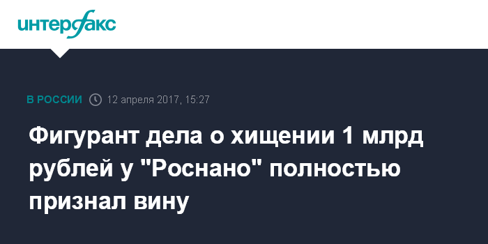 Фигурант дела о хищении 1 млрд рублей у "Роснано" полностью признал вину