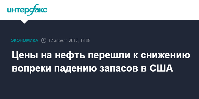 Москва. 12 апреля. INTERFAX.RU - Нефть перешла от подъема к снижению на торгах в среду, несмотря на сокращение запасов топлива в США по итогам прошедшей недели.