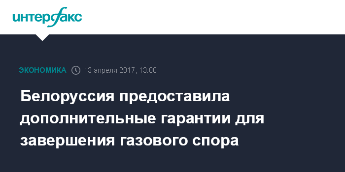 Москва. 13 апреля. INTERFAX.RU - Белоруссия предоставила дополнительные гарантии для завершения газового спора, заявил премьер-министр Дмитрий Медведев на заседании правительства.