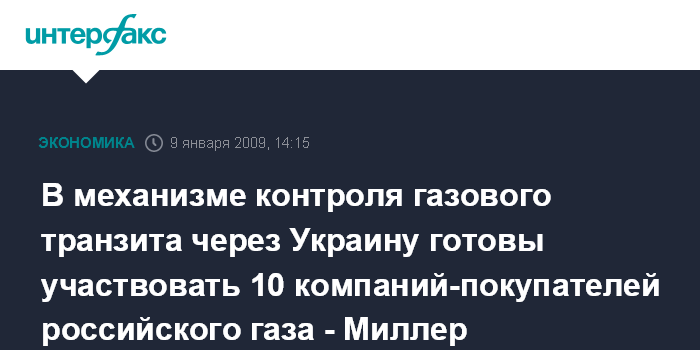 В механизме контроля газового транзита через Украину готовы участвовать 10 компаний-покупателей российского газа - Миллер
