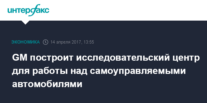 Москва. 14 апреля. INTERFAX.RU - Крупнейший автопроизводитель США General Motors построит центр исследований и разработки в Сан-Франциско и наймет дополнительно 1,1 тыс. сотрудников для работы в нем с целью создания собственных беспилотных автомобилей.