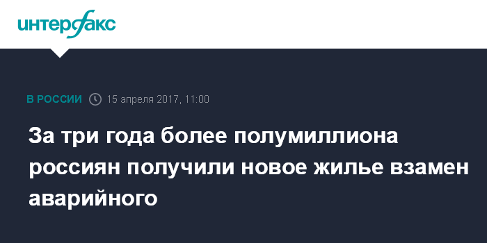 За три года более полумиллиона россиян получили новое жилье взамен аварийного