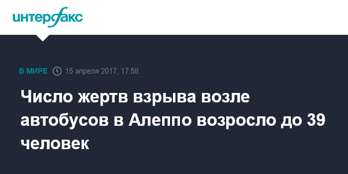 Число жертв взрыва возле автобусов в Алеппо возросло до 39 человек