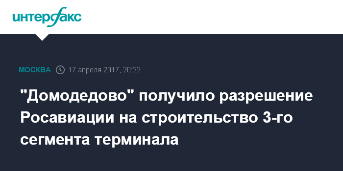 Москва. 17 апреля. INTERFAX.RU - Аэропорт "Домодедово" получил от Росавиации разрешение на начало строительства третьего сегмента пассажирского терминала (Т3).