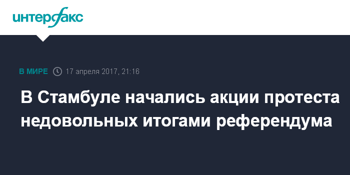 Москва. 17 апреля. INTERFAX.RU - Противники перехода Турции к президентской форме правления организовали протесты в крупнейшем городе страны Стамбуле, сообщило в понедельник агентство АР.
