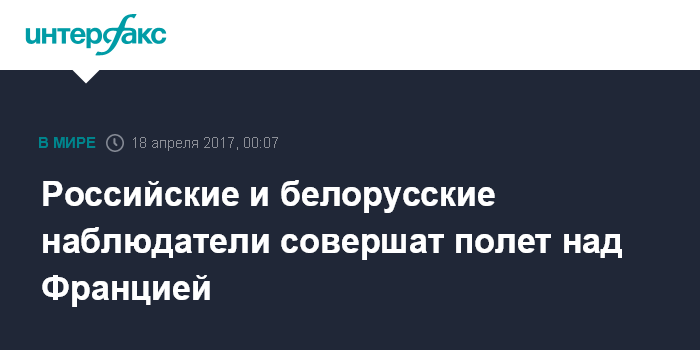 Российский самолет наблюдения будет выполнять полет по согласованному с наблюдаемой стороной маршруту, а французские специалисты на его борту будут контролировать порядок применения аппаратуры наблюдения и соблюдение положений, предусмотренных договором, отметил Рыжков.