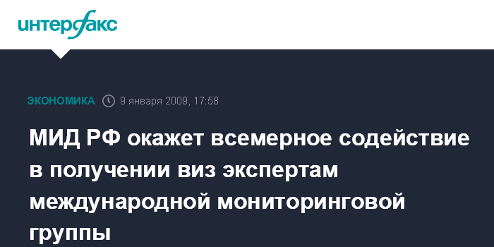 "МИД РФ окажет всемерное содействие в немедленном получении российских виз международными экспертами, которые будут участвовать в работе международной многосторонней мониторинговой группы", - сказал журналистам в пятницу первый замглавы МИД РФ Андрей Денисов.